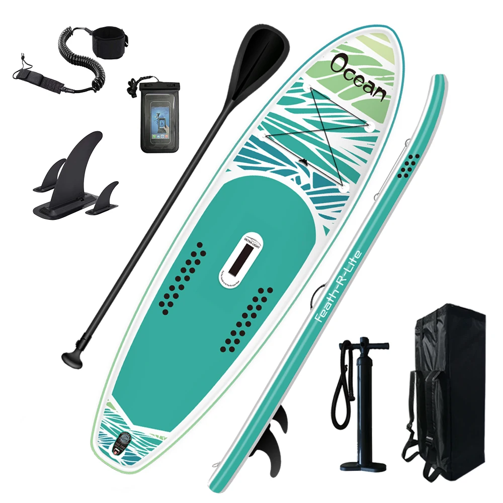 AUS Inflatable SUP Paddle Board Stand Up Light Ocean All Skill Levels Included with Adj Paddle Pump ISUP Backpack, Leash