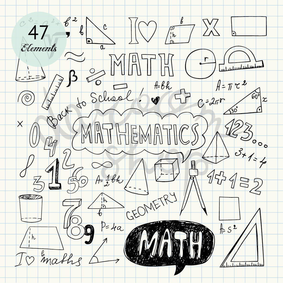 Hand Drawn Mathematics Clip Art/Math Elements and Symbols/Back to School/Pencil Drawing/Notebook Doodle/Vector EPS PNG/Digital Download